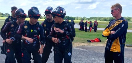 Gary Smith said that Airspeed's impressive start into the competition with the sole highscore in Round 1 was probably a coincidence and a typical Round 1 situation. Each team has favorite blocks and sequences that happen to fall in place to Airspeed's liking in the first round of the competition. The reality of a new lineup and the well trained Golden Knights 4-way team in their third year caught up with the home team quickly. The U.S. Army team took the lead over Airspeed in Round 3, then never looked back. Gary Smith said that NMP PCH HayaBusa were especially impressed with the Golden Knights in Round 5, and he added several points to his own evaluation that is now available for the interested audience.
