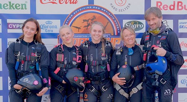 Christiane Wilhelmine Sørfjord Tuv started with Silvana Disch, Camilla Marnor and Julia Heimdall-Hansen in the lineup and finished in 4th place on the world cup leaderboard, 3rd place on the European leaderboard, on home turf at Skydive Voss in 2023. Inside center Silvana Disch had to step back shortly before the world championship 2024, and Ditta Valsdottir was helping out on a very short call.