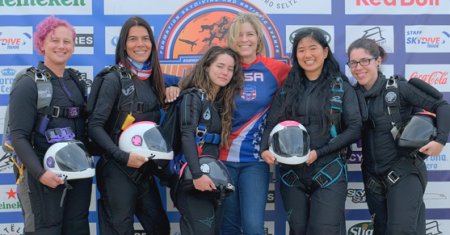 150 training jumps when they arrived at Skydive Arizona. Kim Hollander and her 4-way team went back to the place where she had started her 4-way career with Billy's Beauties in 2006, the Blue Sky Ranch in New York State. Ranch TNT were well prepared for the expected duel with XP Angels, after training under the supervision of Niklas Hemlin. XP Angels did not really have much of a chance to keep up with the unexpected opponent. Ranch TNT allowed them only to tie the very last round after winning all previous nine rounds.