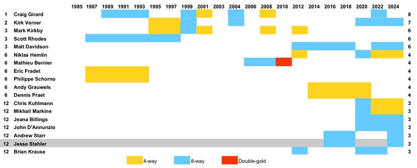 conclusion of the 2018 season. Jesse Stahler remained in the 8-way lineup from 2018 through 2021, while gradually shifting his focus toward horizontal 4-way training and competition. Eventually, he finalized his preferred 4-way lineup and embarked on the path toward a national championship beginning in 2023. The result was a USPA gold medal in October of last year, marking the start of a serious challenge to the French top favorites for the world’s 4-way crown at the World Championships in October 2026.