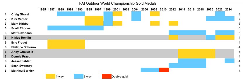 By that time, Arizona Airspeed—now featuring three new 4-way world champions alongside Niklas Hemlin—had already enjoyed two additional years of stability with their lineup, while NMP PCH HayaBusa had not yet even recruited a replacement for Michele Silvi for the next outdoor world championship. It came as no surprise that the U.S. team won convincingly at Crystal Coast 2024. The event marked the first outdoor world championship since 2010 in which NMP PCH HayaBusa failed to finish in any medal position.