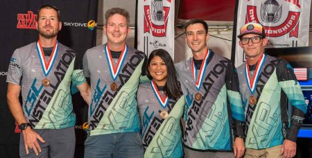 The Constellation lineup for this year is now complete. Natalie Rodriguez and Russ Bayuk continue with coach Andrew Happick, joined by new members Marion Stallworth and Steve Vigliotti. The two newcomers previously competed together on Very Very Serious, which placed 8th on the same leaderboard. Marion Stallworth already has a USPA bronze medal,